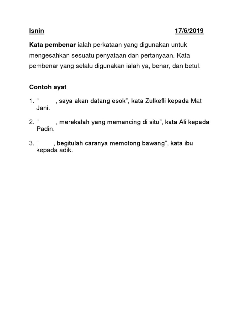 Contoh Jurnal Refleksi Guru Otosection Senaraikan kata seru kata tanya kata perintah kata pembenar dan kata pangkal ayat. Latihan 1 Kata Nama Latihan 2 Kata Ganti Nama Latihan 3 Malay Language. Ayah berangkat ke Ipoh esok.